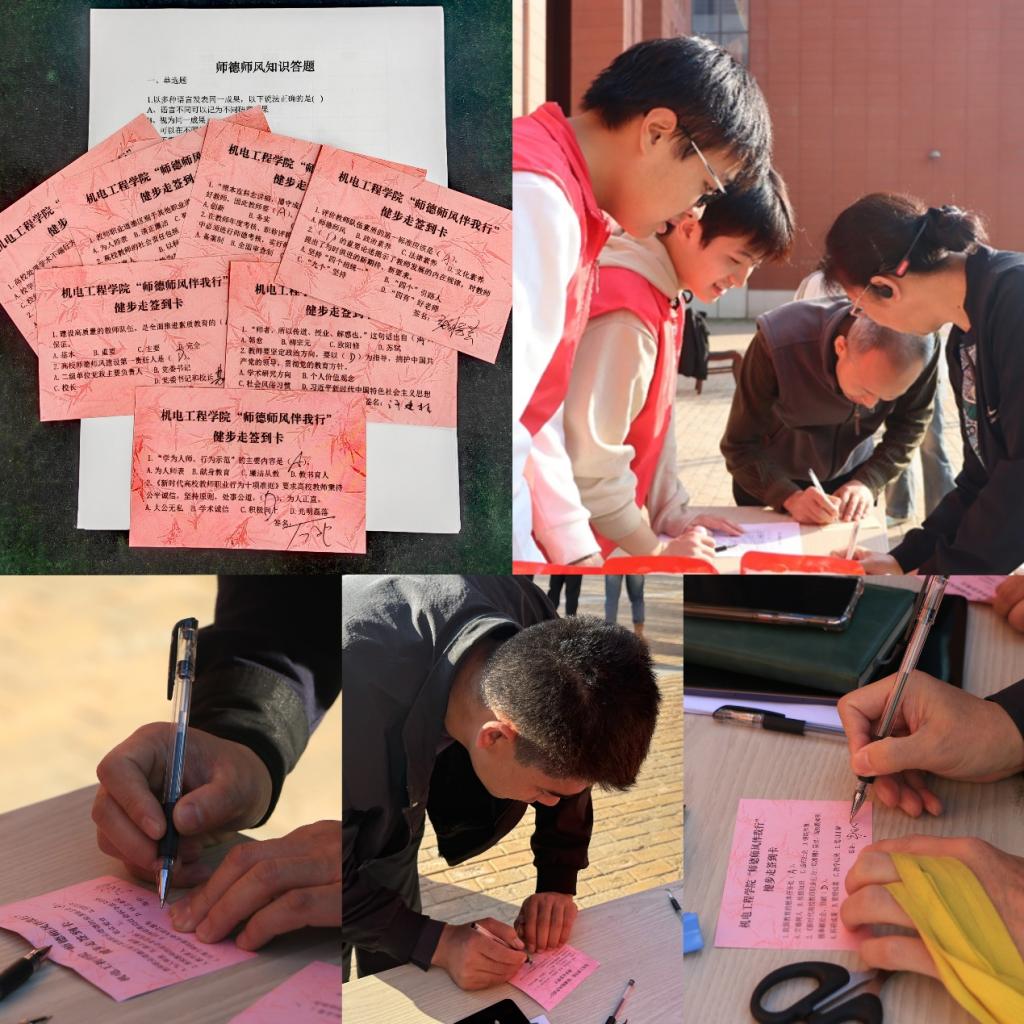学院党委在活动开始前一天为全院教职工发放师德师风知识答题手册,涵盖了师德规范、教育法律法规、职业道德建设、教育心理学等多个方面,旨在通过全面考察教师的专业素养和师德修养,引导全体教师以德立身、以德立学、以德施教,进一步提高教师思想道德素养和敬业奉献精神,激发广大教师爱岗敬业、教书育人的热情。活动当天,在健步走集章打卡点设置知识竞答通关小游戏,以此检验大家的学习成果。教职工们步伐轻快,欣赏美丽的校园风景,积极参与学习答题,边答题、边交流,气氛热烈。此次活动营造了学院尊师重教的良好氛围,增强了教师的职业荣誉感和归属感,有效加深了教师们对师德师风重要性的认识,也激发了他们以更加饱满的热情和更加专业的素养投身教育事业的决心。